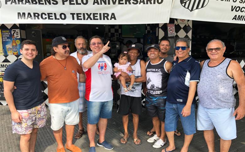Teixeira, que foi presidente do Peixe no biênio 1992-1993 e, depois, de 2000 até o fim de 2009, esteve pessoalmente na panificadora para receber a homenagem dos torcedores santistas pelos seus 54 anos.