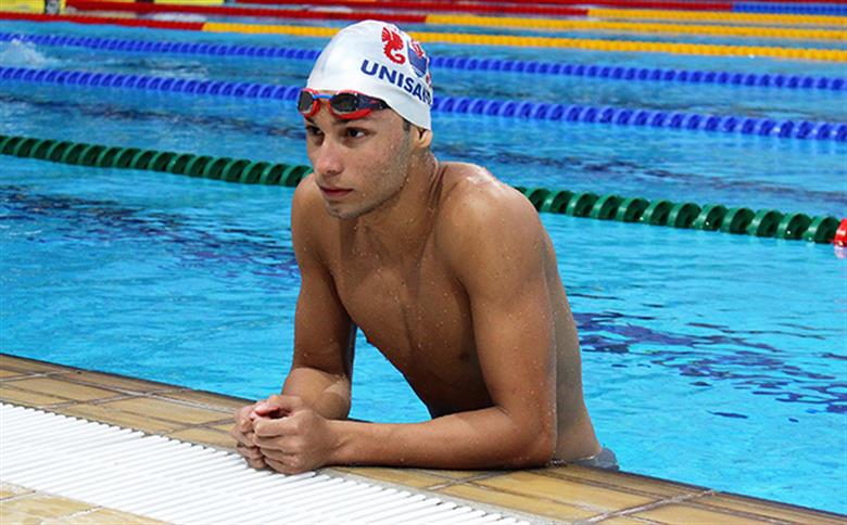 Leonardo de Deus, nadador da Unisanta, deu um exemplo de superação no Troféu Brasil Maria Lenk.