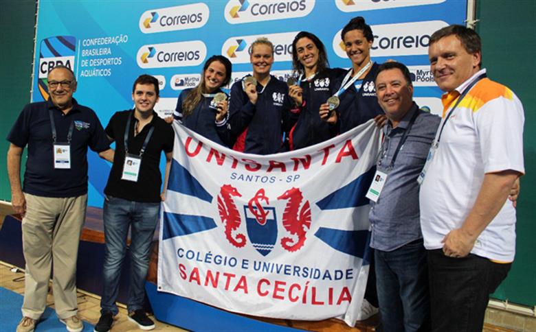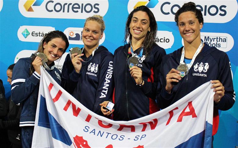 A Unisanta ficou com a medalha de bronze no revezamento 4x100m medley feminino.