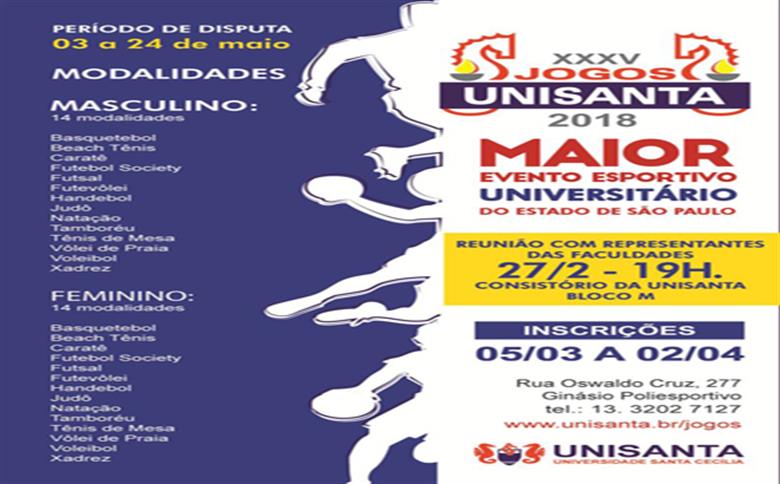 XXXV Jogos da Unisanta estão chegando. Hoje acontece a 1ª reunião com as atléticas