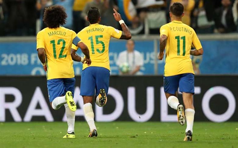 Paulinho e Phillippe Coutinho da equipe canarinho.