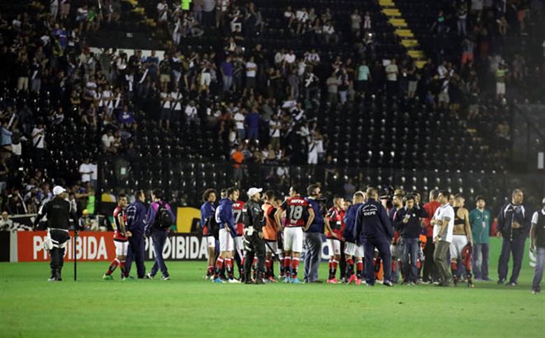 Logo após o fim do jogo, torcedores do Vasco arremessaram objetos no campo, inclusive cadeiras, para impedir a saída do time do Flamengo. A polícia reagiu com bombas de gás lacrimogêneo e de pimenta e o conflito se intensificou.
