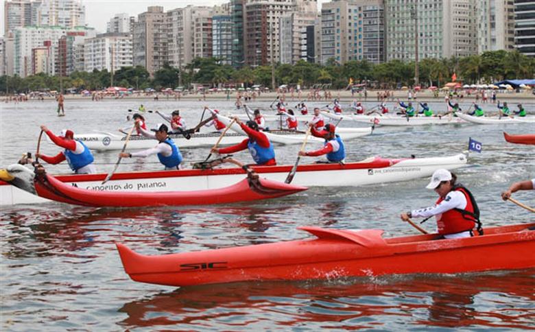 Os recordes marcaram o 14º Desafio Volta à Ilha de Santo Amaro de Canoas Havaianas, que teve largada e chegada na praia da Aparecida, neste sábado (4). Largaram 30 equipes, maior participação no continente.