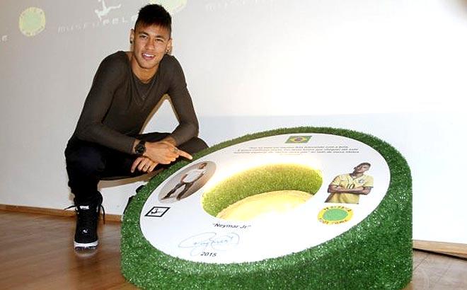 Neymar deixa sua marca na calçada da fama do Museu Pelé