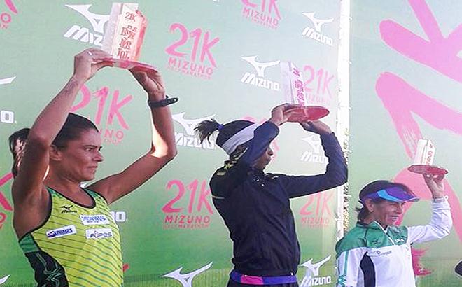 A corredora santista Sirlene Souza de Pinho (Unimes/ Memorial/ Fupes/ Mizuno/ CDE) garantiu o segundo lugar na Mizuno Half Marathon, em São Paulo, neste domingo (14).