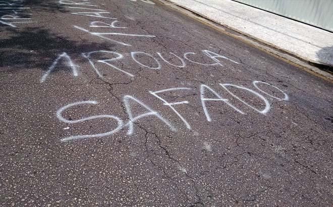 Chão em frente ao prédio de Arouca também é pichado por torcedores
