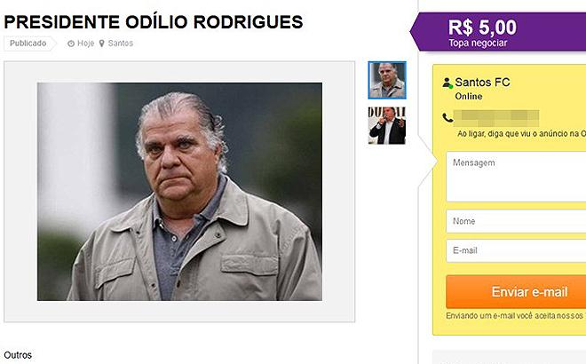 Torcida coloca presidente do Santos 'à venda' em site de classificados