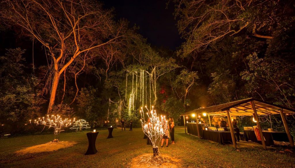 O restaurante combina produtos locais com a beleza da floresta ao redor. Você pode escolher entre a Experiência Cultural Aborígene (inclui um banquete com sete pratos e uma performance cultural) ou a Experiência Gastronômica na Floresta (inclui um menu degustação tropical com seis pratos).