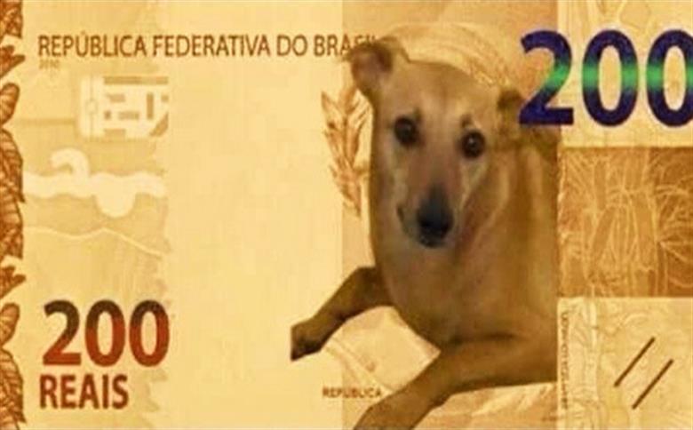 Logo após o anúncio do lançamento da cédula de R$ 200, que deve começar a circular em agosto, diversos usuários compartilharam montagens com o vira-lata na nota.
