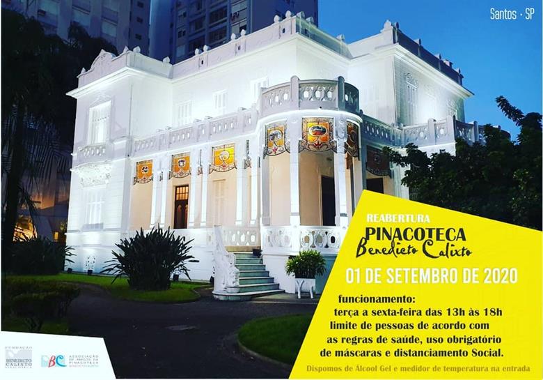 PORTAS ABERTAS – A Pinacoteca Benedicto Calixto reabriu hoje ao público após meses de portas fechadas por causa da pandemia do coronavírus. Os visitantes poderão conhecer o casarão branco que tanta identidade tem com a história de Santos e também conferir a exposição permanente das obras do pintor que dá nome ao lugar, Benedicto Calixto.