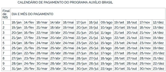 O calendário com as datas de pagamento foi disponibilizado no anexo da instrução normativa, tendo por base o Número de Inscrição Social (NIS) de cada beneficiário. Atualmente, 17,5 milhões de famílias são atendidas pelo programa.