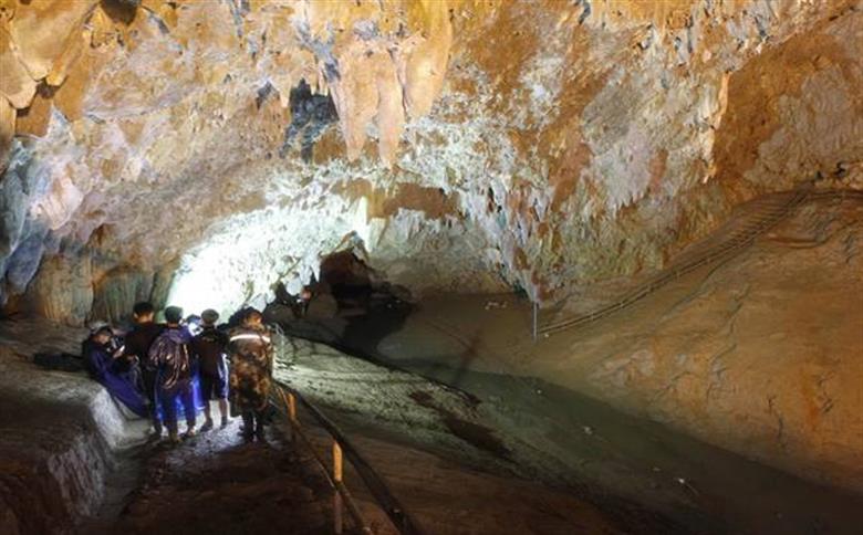 O grupo foi encontrado na noite de segunda-feira (2), em uma área de terra firme da caverna, a uma distância de 4km da entrada. Eles se refugiaram no local para se protegerem das chuvas torrenciais, mas a água bloqueou a passagem.
