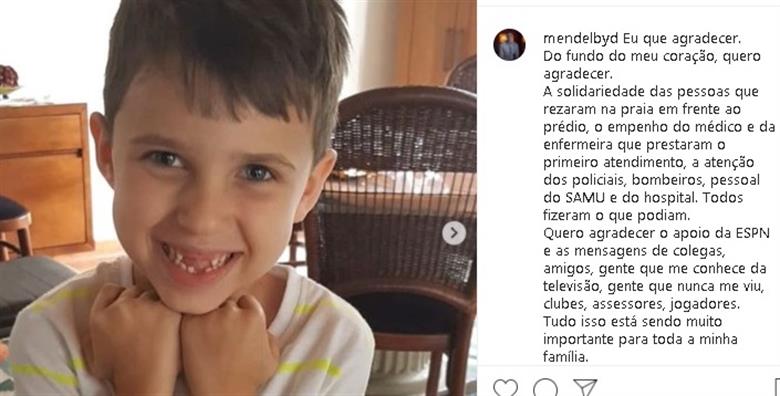 TRAGÉDIA – Pai do menino de 5 anos morto ontem à tarde ao cair do quinto andar de um prédio em Guarujá, onde passava férias, o jornalista esportivo Mendel Bydlowski publicou um texto em sua conta no Instagram agradecendo o apoio de todos os amigos e até de desconhecidos e falando sobre o filho, Arthur.