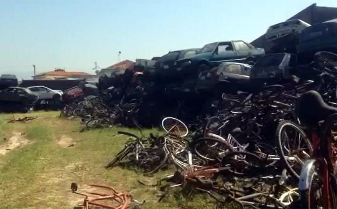 Dentro do pátio estão cerca de 600 veículos entre carros, motos e bicicletas apreendidos com alguma irregularidade. Apesar de parecerem abandonados, os veículos têm donos. Os funcionários do pátio contaram para a equipe da Santa Cecília TV que criminosos usam o entulho acumulado na calçada para pularem o muro. Só ontem (6) duas motos teriam sido furtadas.