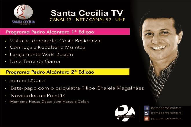 SANTA CECÍLIA TV – Nos programas que vão ao ar nesta semana, Pedro Alcântara apresenta a inauguração do estúdio WSB design, a inauguração da primeira kebaberia de Santos Mumtaz, as novidades do restaurante e chopperia Point 44, e ainda o Momento House Decor com Marcelo Colon.