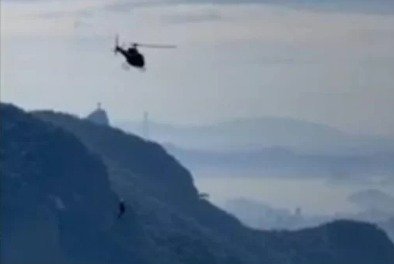 Polícia usa helicóptero para resgatar esportista pendurado na Pedra da Gávea