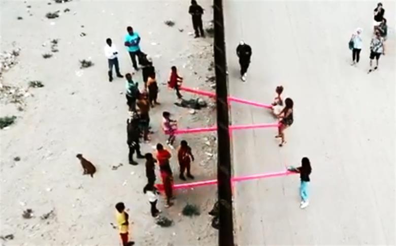 Professores instalam gangorras no muro entre Estados Unidos e México