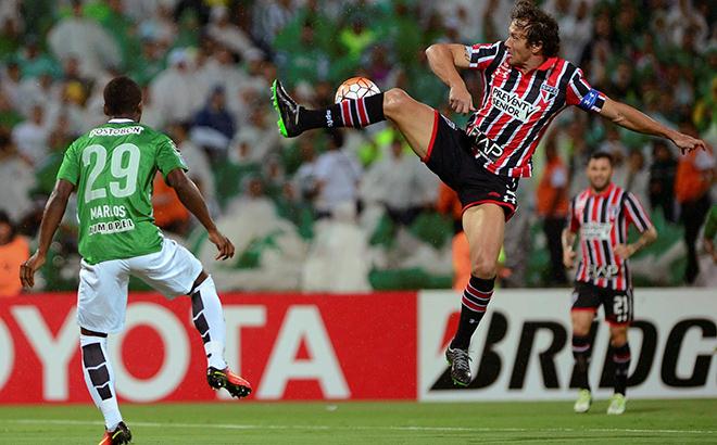 Fazendo valer o seu bom toque de bola, o Atlético Nacional encontrava espaços na zaga são-paulina. Borja e Marlos Moreno quase balançaram as redes tricolores.