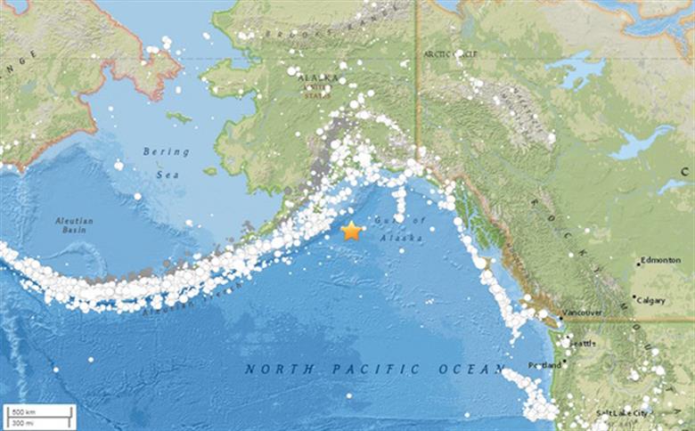 O movimento gerou um alerta de tsunami para toda a costa, especialmente, para o Golfo do Alasca. De acordo com a USGS, as cidades mais próximas são Chiniak, Anchorage, Eagle River, Knik-Fairview e Juneau. Ao todo, há pouco mais de 362 mil habitantes nessas localidades.