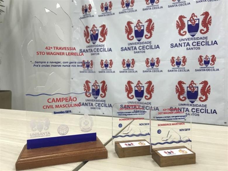 Confeccionados em acrílico, os troféus foram entregues pela alta direção da Unisanta ao tenente coronel do GBMar, comandante Salvador Alves Diniz Filho e ao tenente Paulo Sérgio dos Santos, nesta segunda (25/11). A prova será realizada no dia 28/11, às 10h, na Praia do Itararé, em frente ao Ilha Porchat, e contará com a presença de 300 inscritos de todo o estado de São Paulo.