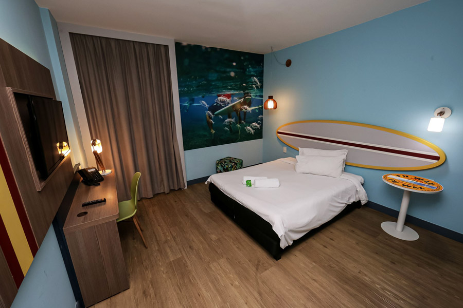 Com 99 apartamentos confortáveis e ambientados com temática inspirada no surf, o Golden Tulip São Paulo Guarujá oferece estrutura completa, incluindo piscina adulto e infantil, sauna, fitness center, espaço de coworking e bar 24 horas, serviço pet-friendly e café da manhã incluso na diária.