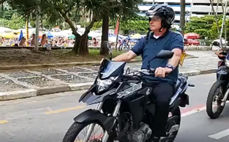 Bolsonaro anda de moto e visita padarias em Guarujá; Assista