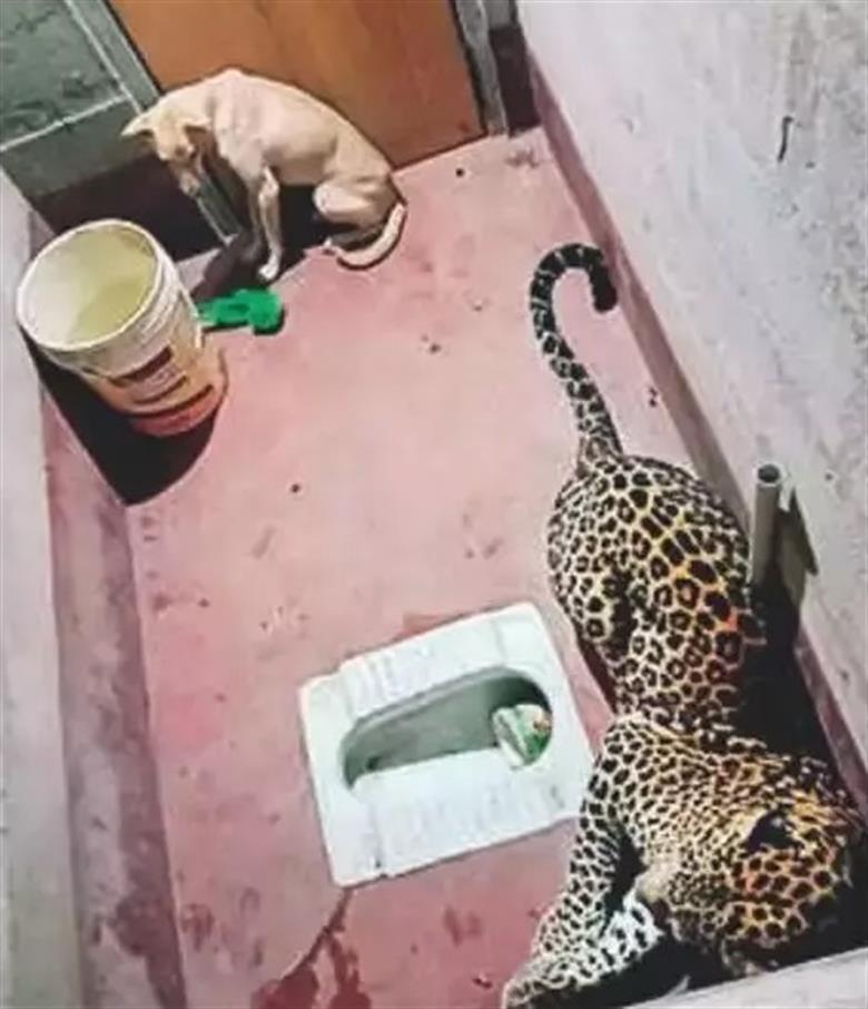 Leopardo invade casa e dorme com o cachorro da família no banheiro; veja vídeo