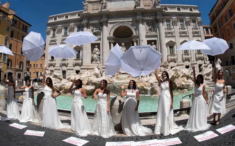 Noivas protestam contra adiamento de casamentos em Roma