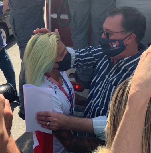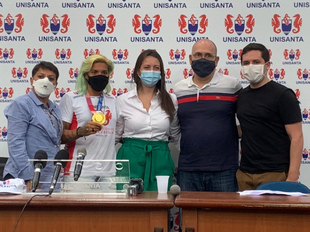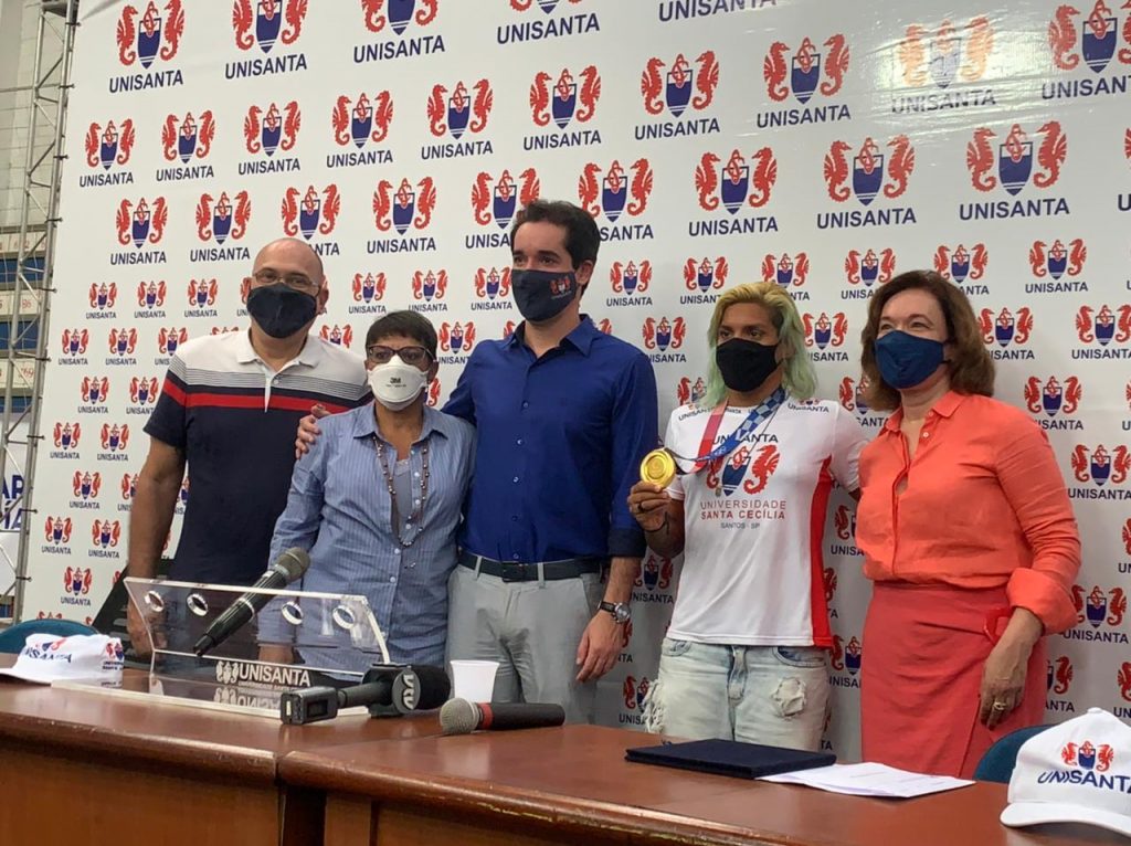 Ana Marcela reencontra alta direção da Unisanta após ouro olímpico
