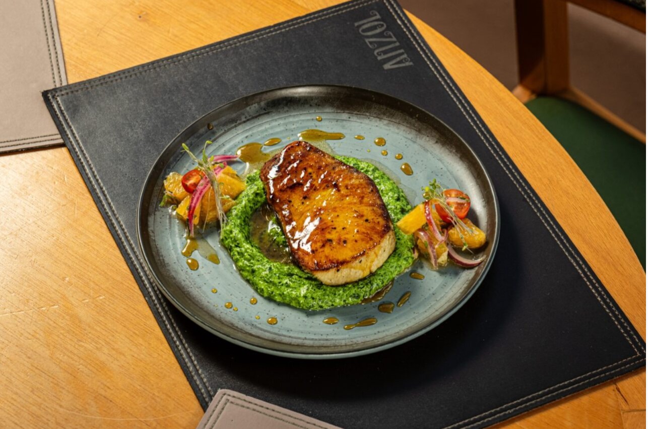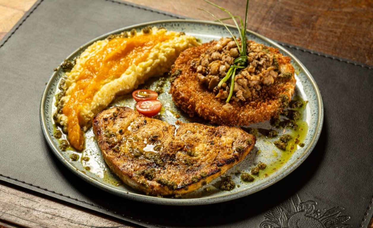- Meca Monte Serrat (Meca ao Molho de Laranja com Purê de Couve e Vinagrete Cítrico – R$ 68,00).