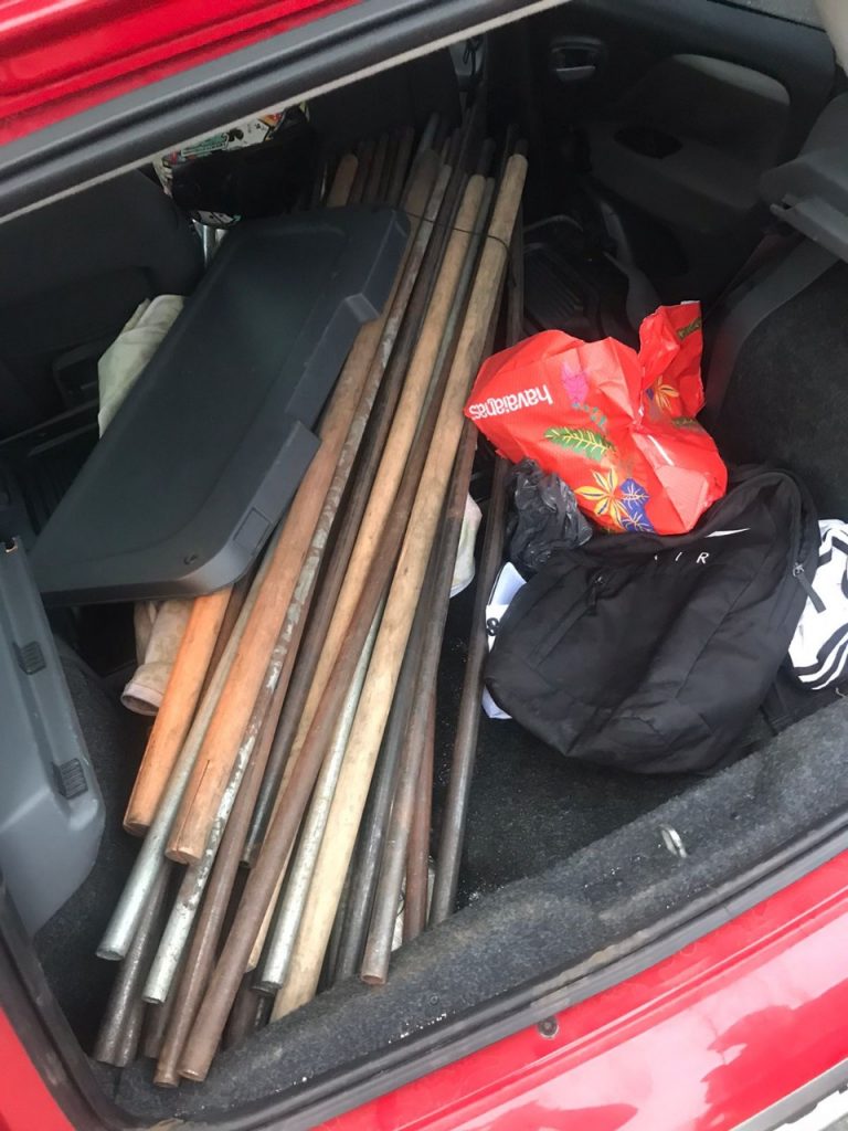 O grupo foi abordado pelos policiais e, durante a revista no veículo, foram encontradas 40 barras de ferro, cinco bombas artesanais, seis cabos de madeira, um sinalizador e várias camisetas e bonés da torcida organizada do Santos.