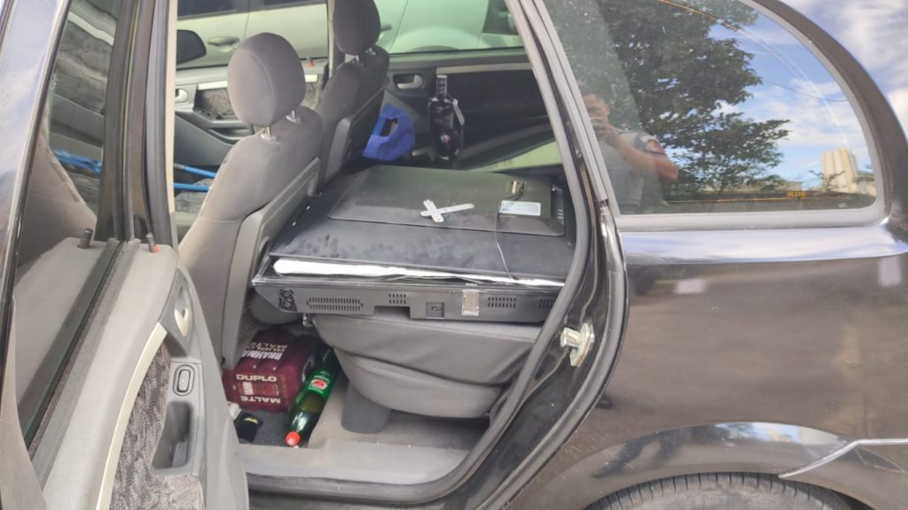 No interior, os policiais localizaram quatro televisores, 10 celulares, R$ 400 em dinheiro, diversos documentos pessoais, cartões crédito, um micro-ondas, inúmeras joias na cor dourada, mantimentos e bebidas alcoólicas.