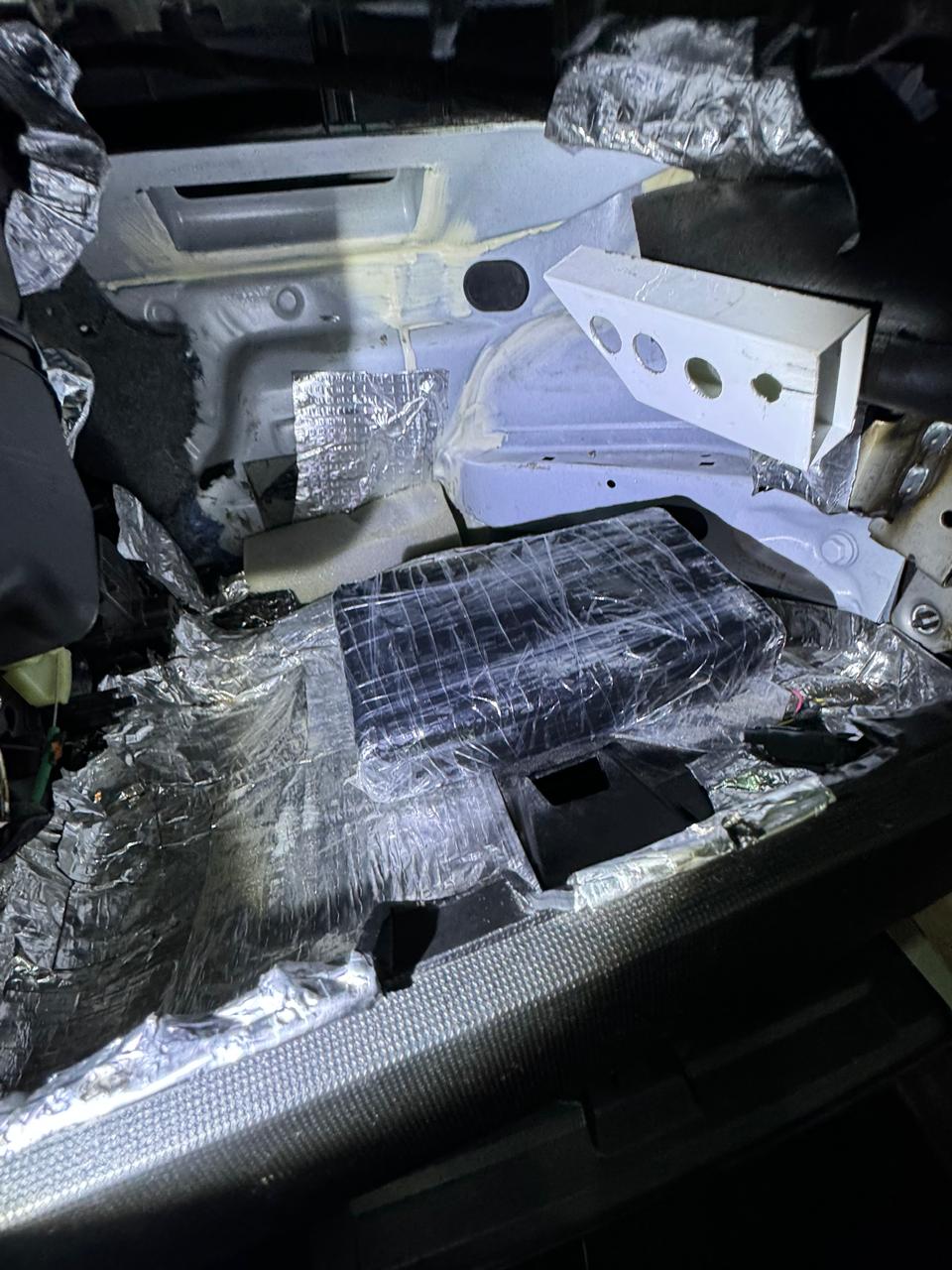Assim que o carro distanciou-se uma quadra do galpão, os policiais resolveram abordar o criminoso. Em revista minuciosa ao veículo foi um encontrado um fundo falso no painel, onde estavam guardados 21 tijolos de cocaína (21000.00 gramas).