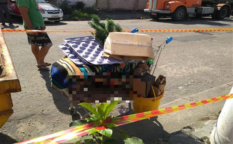 Um corpo de um homem foi encontrado amarrado dentro de um carrinho de supermercado abandonado no meio da Rua Antônio Maia, no Estuário, em Santos.