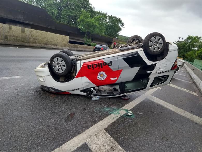 Viatura da PM capota durante escolta de presos e dois ficam feridos na Padre Manoel da Nóbrega