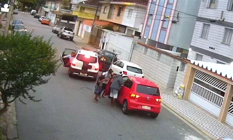 Câmeras de monitoramento flagram assalto a veículo em rua de São Vicente