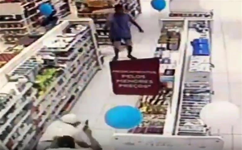 Assalto em Guarujá: vídeo mostra bandido sendo morto por PM em farmácia