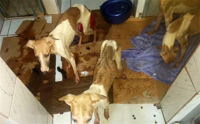A Polícia Militar Ambiental resgatou pelo menos seis cachorros da raça Whippet que estavam sofrendo maus tratos.
