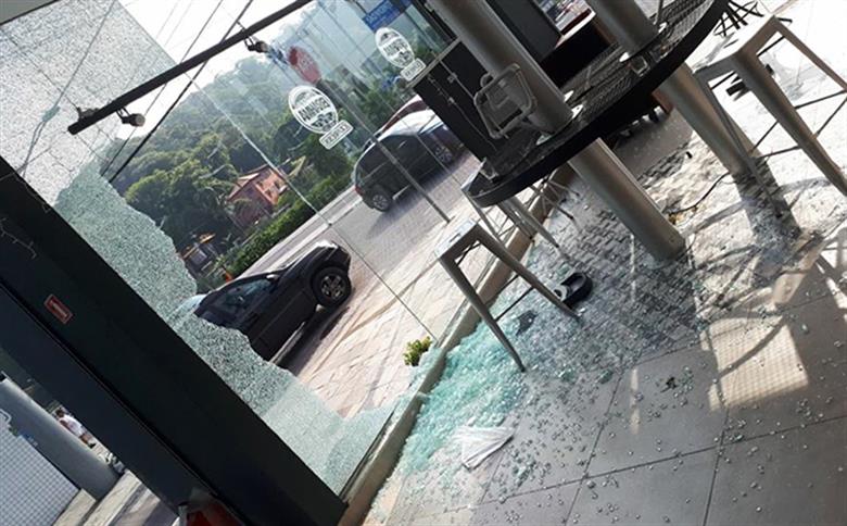 Uma cervejaria teve a sua vidraça quebrada na madrugada desta quinta-feira (1º), em Praia Grande.