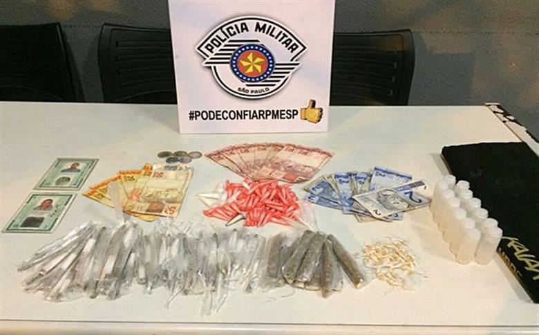 Os jovens portavam 71 pinos de cocaína, 13 frascos de lança perfume e mais de R$ 200,00.