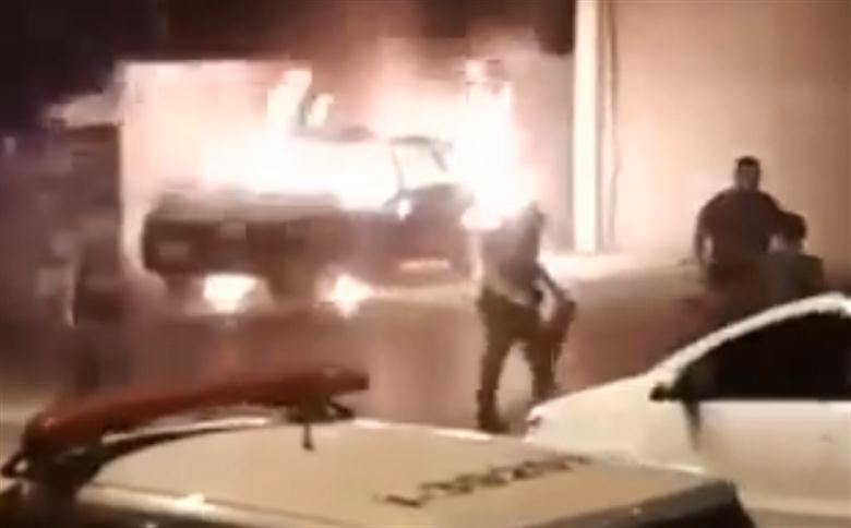 Vândalos colocam fogo em viatura da polícia em frente ao 3° DP de São Vicente