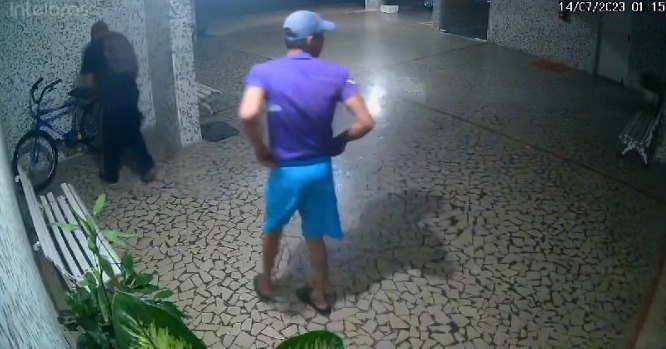 Trio invade prédio e furta bicicleta de garagem em Praia Grande; Vídeo