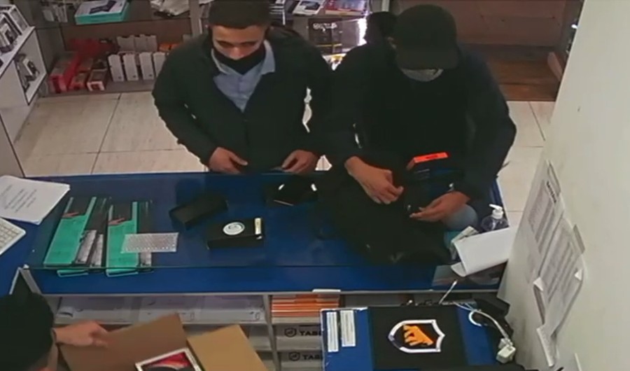 Dois homens invadiram e roubaram uma loja de celulares na rua Fernão Dias, em Santos, durante o assalto os indivíduos atiram contra as vítimas.