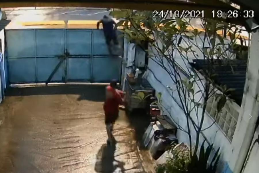 Homem invade loja de auto-peças e é perseguido por funcionário em Bertioga; VÍDEO