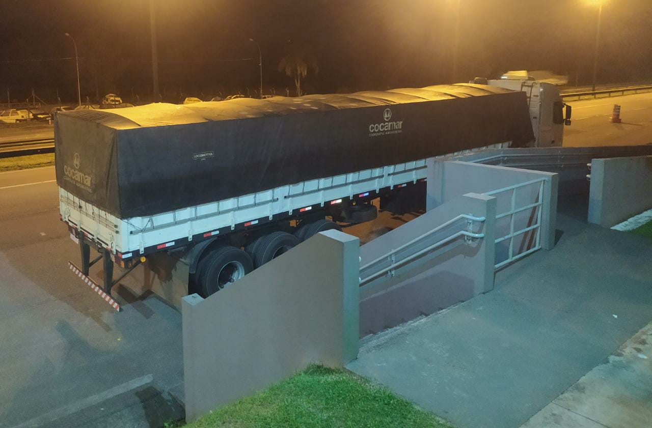 Um caminhoneiro foi preso em flagrante por transportar uma carreta carregada de cigarros contrabandeados, oriundos do Paraguai, neste sábado (23).