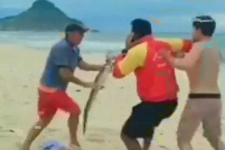 Dois homens brigaram para capturar um filhote de jacaré que apareceu na última quarta-feira (20) na praia da Macumba, zona oeste do Rio de Janeiro. Em um ...