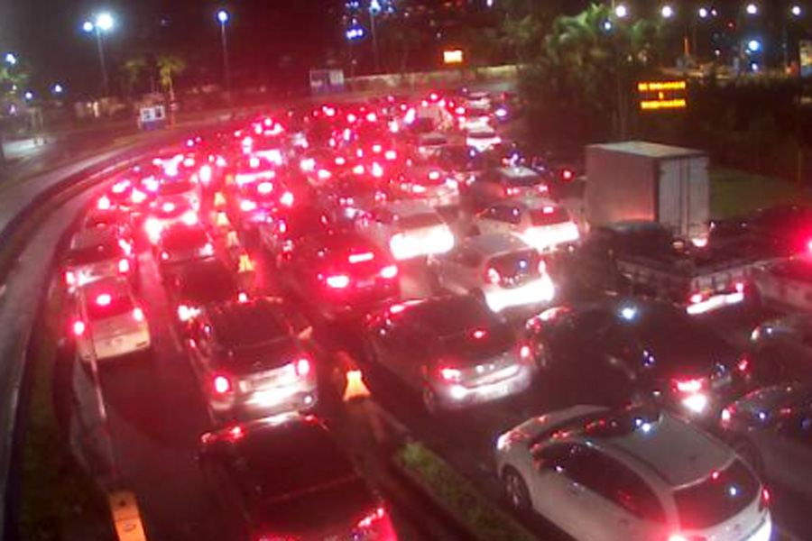 Segundo o Departamento Hidroviário (DH), a travessia de balsas entre Santos e Guarujá precisou ser interditada, das 16h05 às 16h48, por causa das rajadas de vento. No entanto, a situação já foi normalizada e o sistema voltou a operar com seis embarcações.