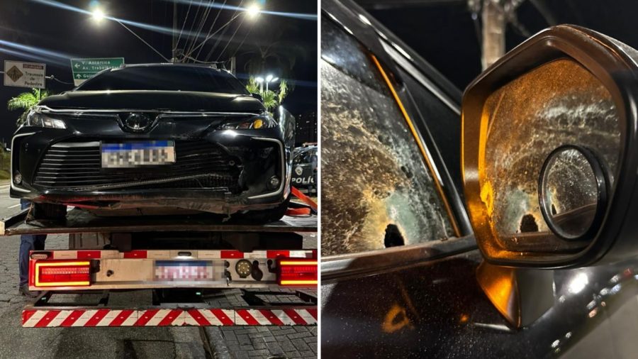O carro conduzido pelo policial militar da reserva baleado por PMs na tarde desta terça-feira (17), na Rodovia Padre Manoel da Nóbrega, em Praia Grande, no litoral de São Paulo, foi atingido por pelo menos 14 disparos. Segundo informações apuradas pela Santa Cecília TV, na Delegacia Sede da cidade, o Toyota Corolla preto apresentava 11 perfurações na lateral e três no capô.