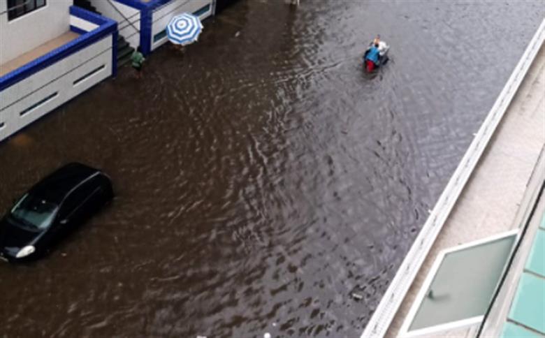 PRAIA GRANDE – A chuva que atinge nesta sexta-feira (26) na Baixada Santista causou pontos de alagamento em Praia Grande.