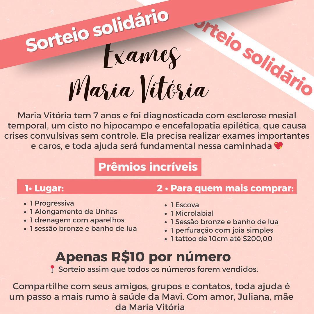 “Estou fazendo uma rifa, para conseguir arrecadar dinheiro, porque esses exames que ela precisa fazer são bem específicos. Preciso fazer o mais rápido possível para descobrir o que é e cuidar exatamente do que ela tem. Ela está tomando quatro medicações e mesmo assim, ainda está convulsionando durante a noite”.
